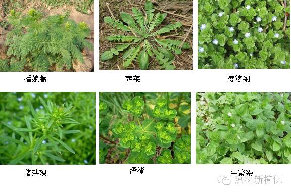 二、大草、小草混生 由于绝大数的杂草都是在上年10-11月份萌发的,所以在这段时间内也积累了一定的植株体量,往往到了3、4月份的时候植株已经很大了,防除难度大,如婆婆纳、簇生卷耳等;同时,在这个季节也会有部分的一年生阔叶杂草刚刚萌发生长,株高较小,幼嫩,如藜、水花生、刺儿菜、蒲公英及部分葎草等。