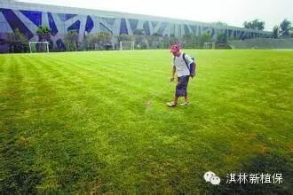 3、先杀后封除草技术的有效运用 到这个季节,往往又是各类杂草不断萌发生长的季节,无论是人工拔出还是一般的药剂防除,只能把现有的杂草除掉,对于施药后萌发的杂草还得继续施药,费工费时。先杀后封除草技术就是先采用上述方法将现有杂草防除后,及时使用封闭药剂圃坪封每亩150-200毫升拌细沙均匀撒施后浇水,可封闭杂草60-90天(由于此时的草坪刚萌发,也可以每亩兑水50-60公斤直接对地面喷雾,也能起到长效防除的作用)。对于暖季型草坪,如果施药时选择了淇胜或暖草全锄,一次施药即可达到封杀双效的作用,可不必再单独使用封闭药剂。